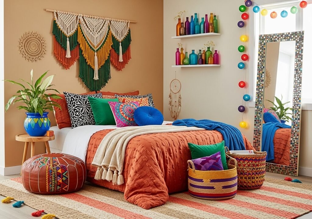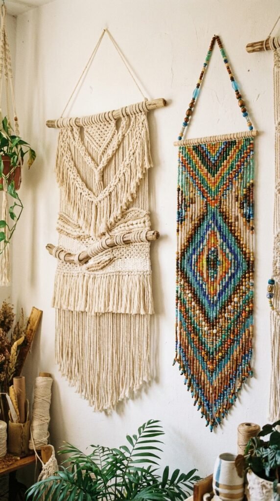 Adorn your walls with macramé tapestries or beaded wall hangings for a handmade touch. These pieces bring tactile warmth and celebrate traditional craftsmanship.