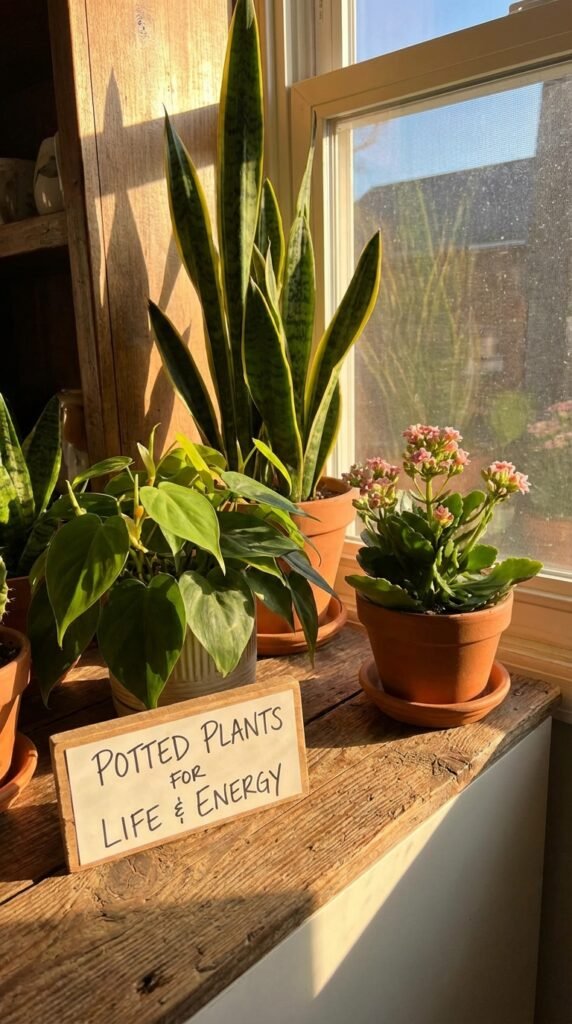 Why it works: The greenery softens the space and connects it to nature. Place in corners or near windows for a balanced look.