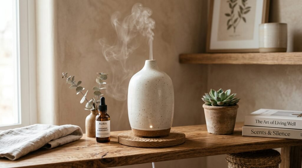 Scent is a powerful tool for “zoning” a space. Because sheds can sometimes smell “musty,” a battery-operated essential oil diffuser is a practical addition. Use grounding scents like cedarwood, sandalwood, or eucalyptus to enhance the outdoor connection.