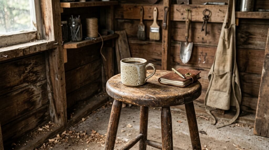 Every reading nook requires a surface for a beverage. Avoid buying new furniture; a vintage wooden stool, a stack of old crates, or even a sturdy tree stump can serve as a side table.