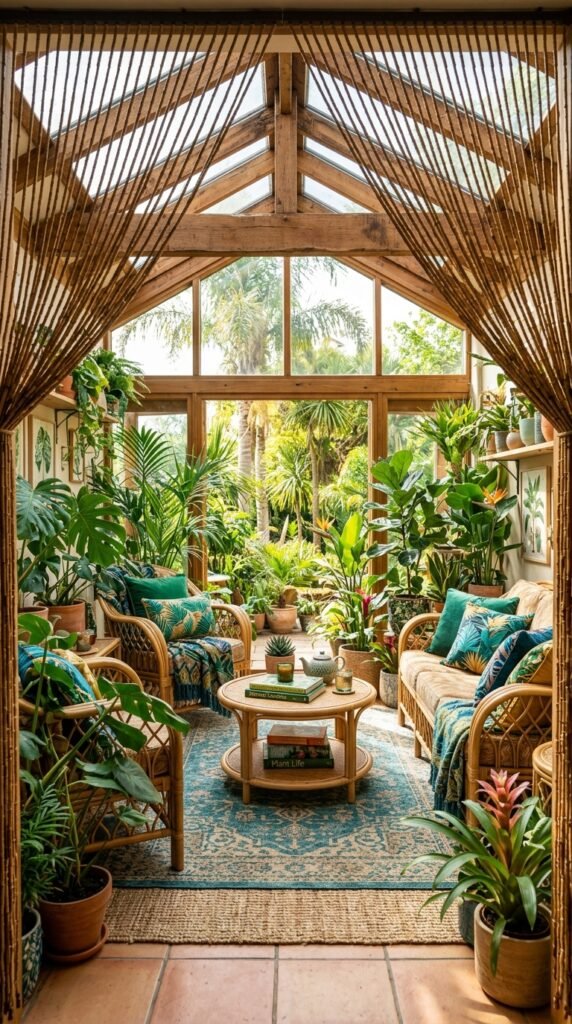 Enhance your sunroom with bamboo beaded curtains to evoke a tropical paradise. Pair with rattan furniture and vibrant cushions for a lively, exotic vibe. The beads’ natural movement mimics the gentle sway of palm leaves.