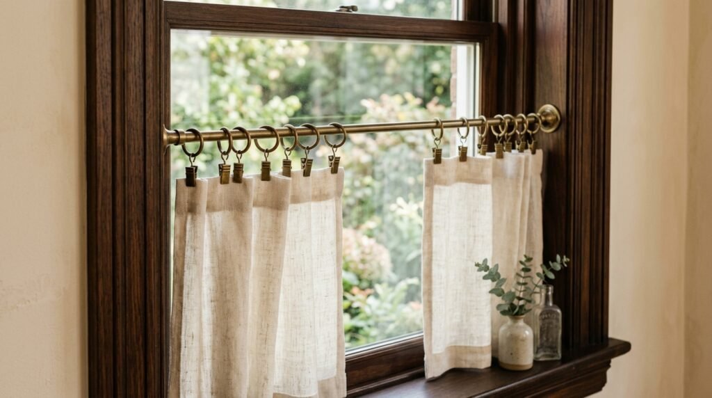 - Heavy Hardware: Avoid thick, 1-inch diameter rods. Cafe curtains are lightweight; a slim, 1/2-inch or 3/8-inch rod is more proportionate and elegant.
