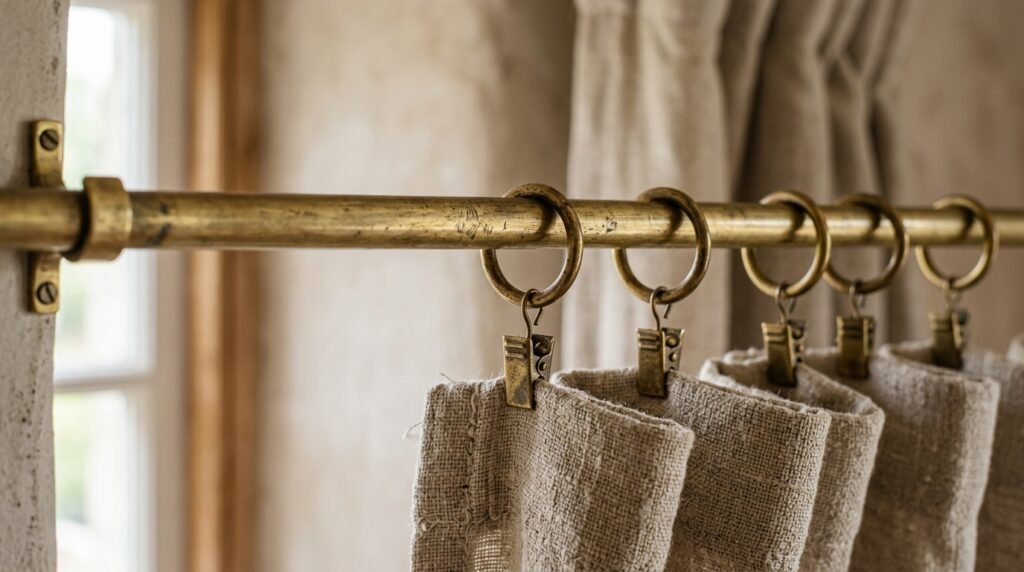 - Ring Clips: These allow the fabric to “pleat” naturally and slide easily. They add a bit of height to the curtain and show off the hardware.