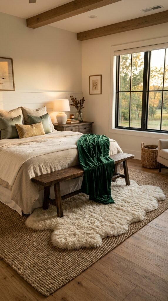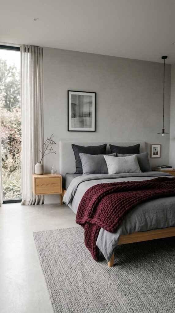 In a minimalist setting, a statement throw can serve as the room’s focal point. Drape a large knit throw in a bold color like deep burgundy across the foot of your bed. This adds a pop of color and texture without disrupting the room’s simplicity.