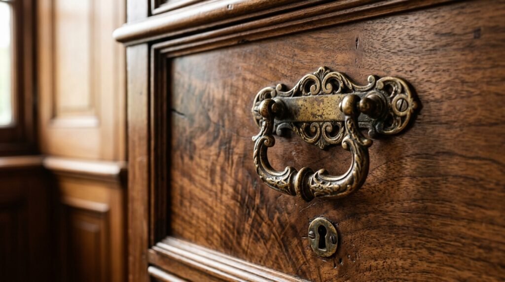 Hardware should act as a subtle accent rather than a distraction. Antique Brass or Oil-Rubbed Bronze are the preferred finishes for warm wood. These “living” metals share a warm undertone with the timber and develop a patina over time, aligning with the “natural and aging” philosophy of the cozy aesthetic.