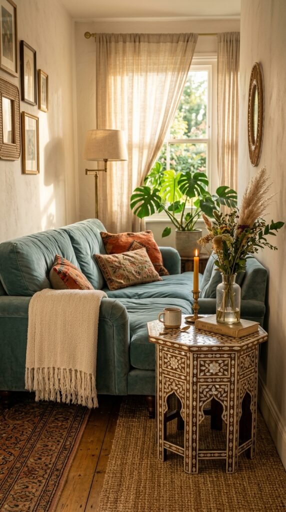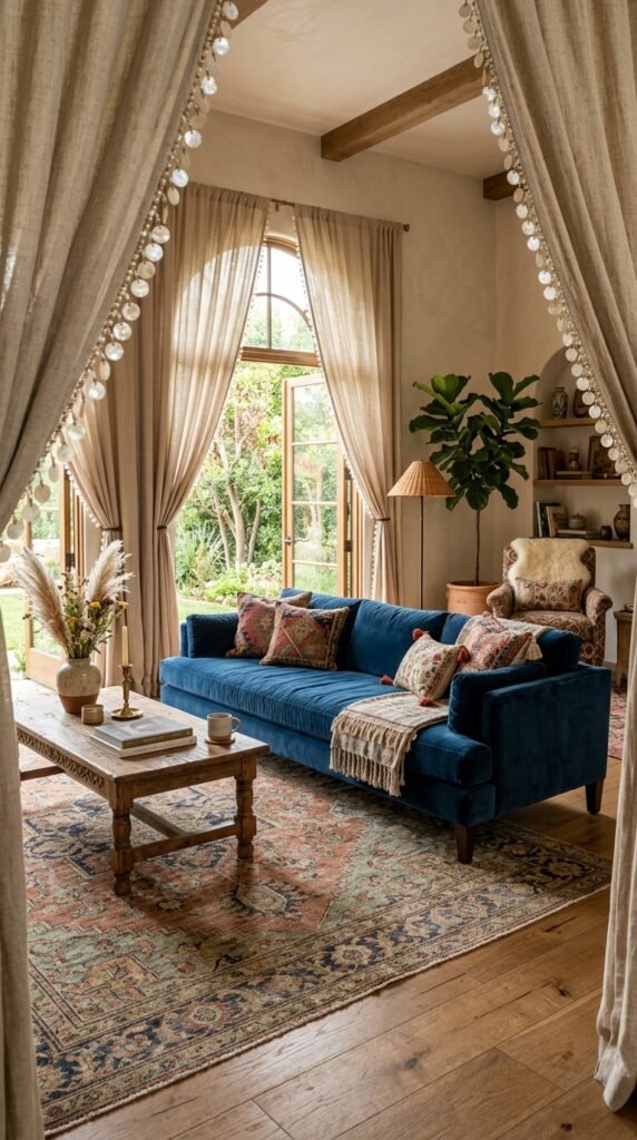 Add a luxurious touch to your windows with mother-of-pearl trimmed curtains. The iridescent border catches the light, creating a subtle shimmer that elevates the entire room. Opt for velvet or silk curtains for added opulence.