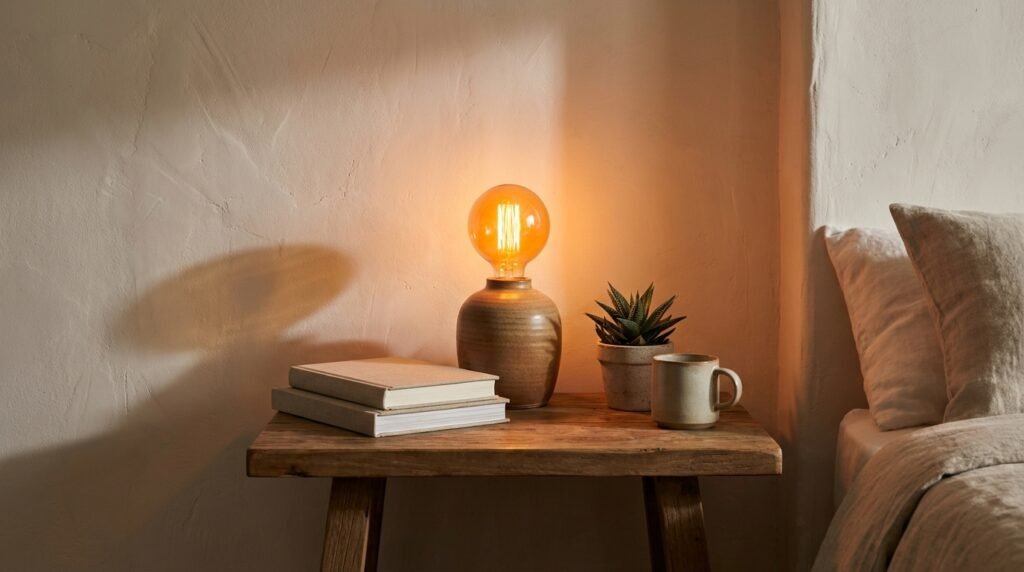 Lighting determines how the eye perceives color and texture. Standard overhead lighting is often too “cool” (blue-toned), which keeps the brain in an alert state and makes a room feel clinical. To create an inviting atmosphere, you must use warm-toned bulbs, specifically those in the 2700K (Kelvin) range. This mimics the warm, amber glow of a sunset.