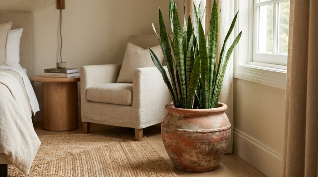 Beyond aesthetics, plants like the Snake Plant or Peace Lily are known for their ability to filter indoor air. This contributes to a “cleaner” feel in the bedroom, which is essential for a space meant for deep rest. Use natural pots made of terracotta, stone, or woven seagrass to keep the organic theme consistent.