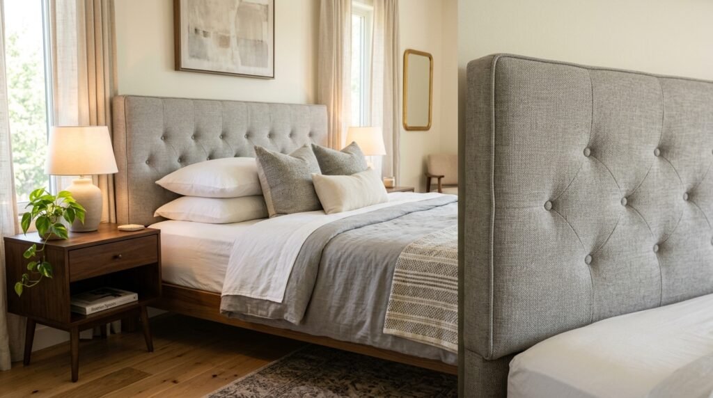 A room that echoes feels cold and uninviting. To create a “hushed” and cozy atmosphere, you need to absorb sound. Upholstered headboards are a great way to do this. They provide a soft surface to lean against and significantly dampen the noise in a room compared to a wooden or metal headboard.