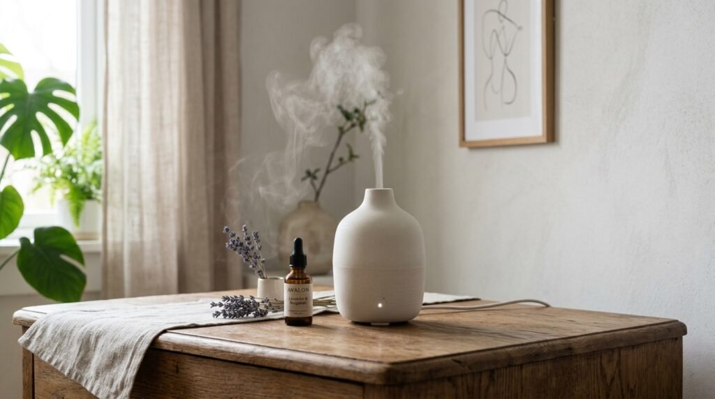 Coziness is not just visual. Use a ceramic diffuser or high-end candles with “earthy” notes like sandalwood or cedar. This “air styling” completes the sensory experience of a bedroom makeover, making it feel like a professional spa retreat.