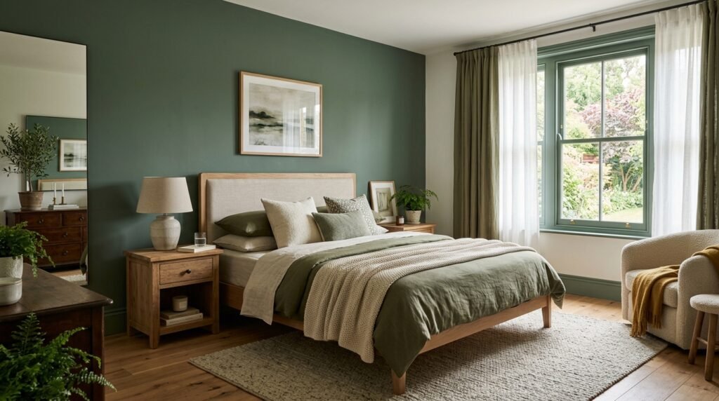 Painting a single wall is the fastest way to change a room’s mood. For a cozy feel, use “color drenching” on one wall: paint the wall, the baseboards, and the window trim in the exact same matte pigment. This removes high-contrast lines and makes the space feel more curated and expansive.