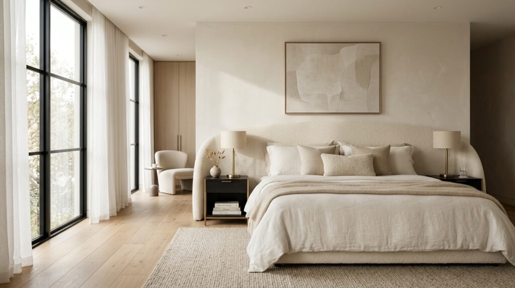 - Mismatched “Whites”: Ensure your cream/white bedding and curtains share the same warm undertone; mixing “cool” and “warm” whites can make the room look yellowed or dirty.
