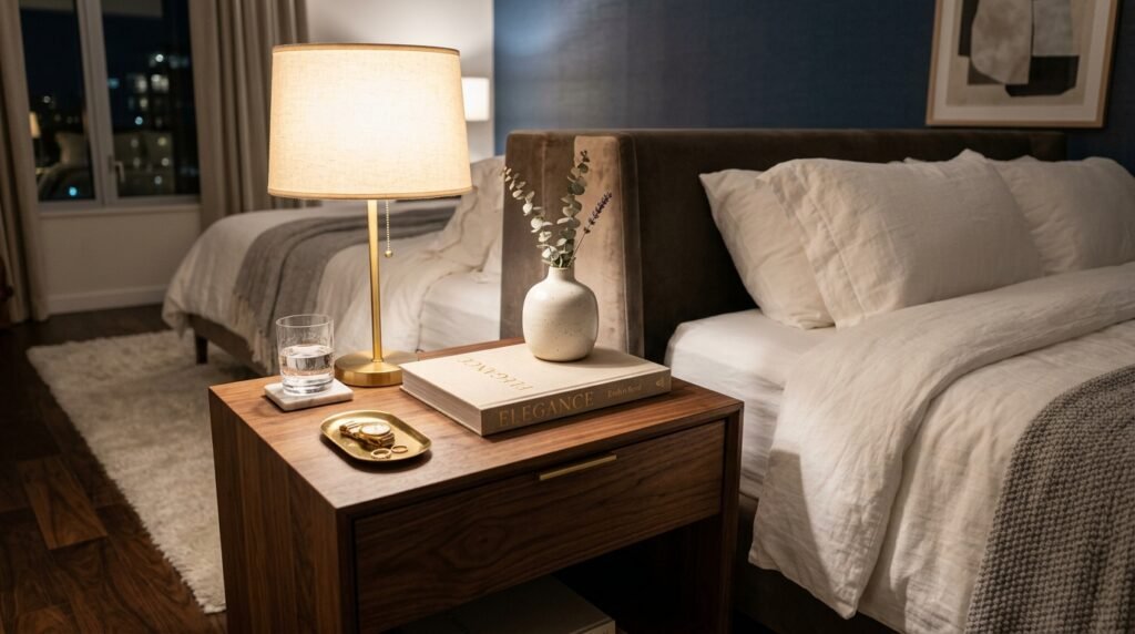 The most “affordable” makeover is removing 50% of what is on your surfaces. Keep only one book and one decorative item on your nightstand. This “visual breathing room” reduces stress and allows the new textures and colors to become the focal point.